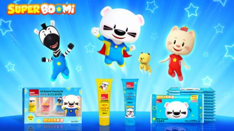Debuting at the China Licensing Expo this week in Shanghai, the first wave of products will go on sale October 23 in Swashes’ online Tmall stores across Asia, as well as on Super BOOMi’s own online shop. Then, 10 additional SKUs will be released in early November throughout offline retail partners and supermarkets across Greater China. Super BOOMi has become the next hit IP after Kung-fu Panda and Angry Birds to be licensed by Swashes to release products for kids and families.
